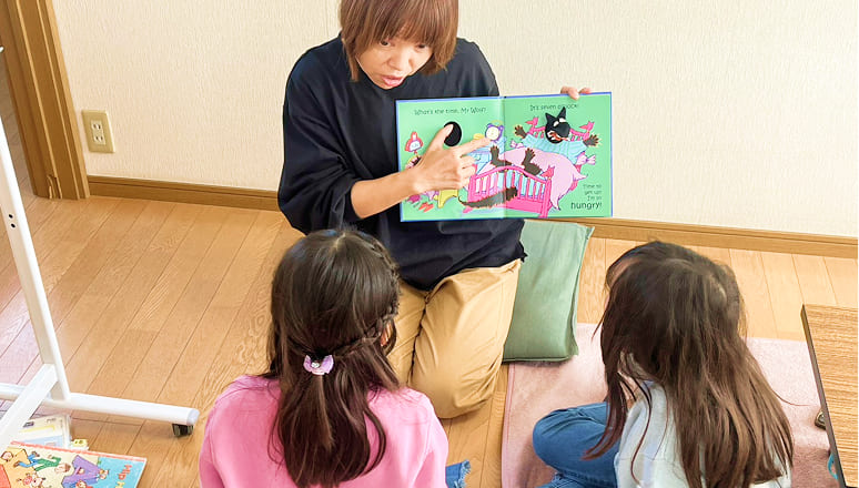 日本人講師の私が、お子さま一人ひとりに寄り添ってレッスンを行います。レッスンは英語を中心に進め、英語が初めてでも、無理なく理解できるよう丁寧に進めていきます。